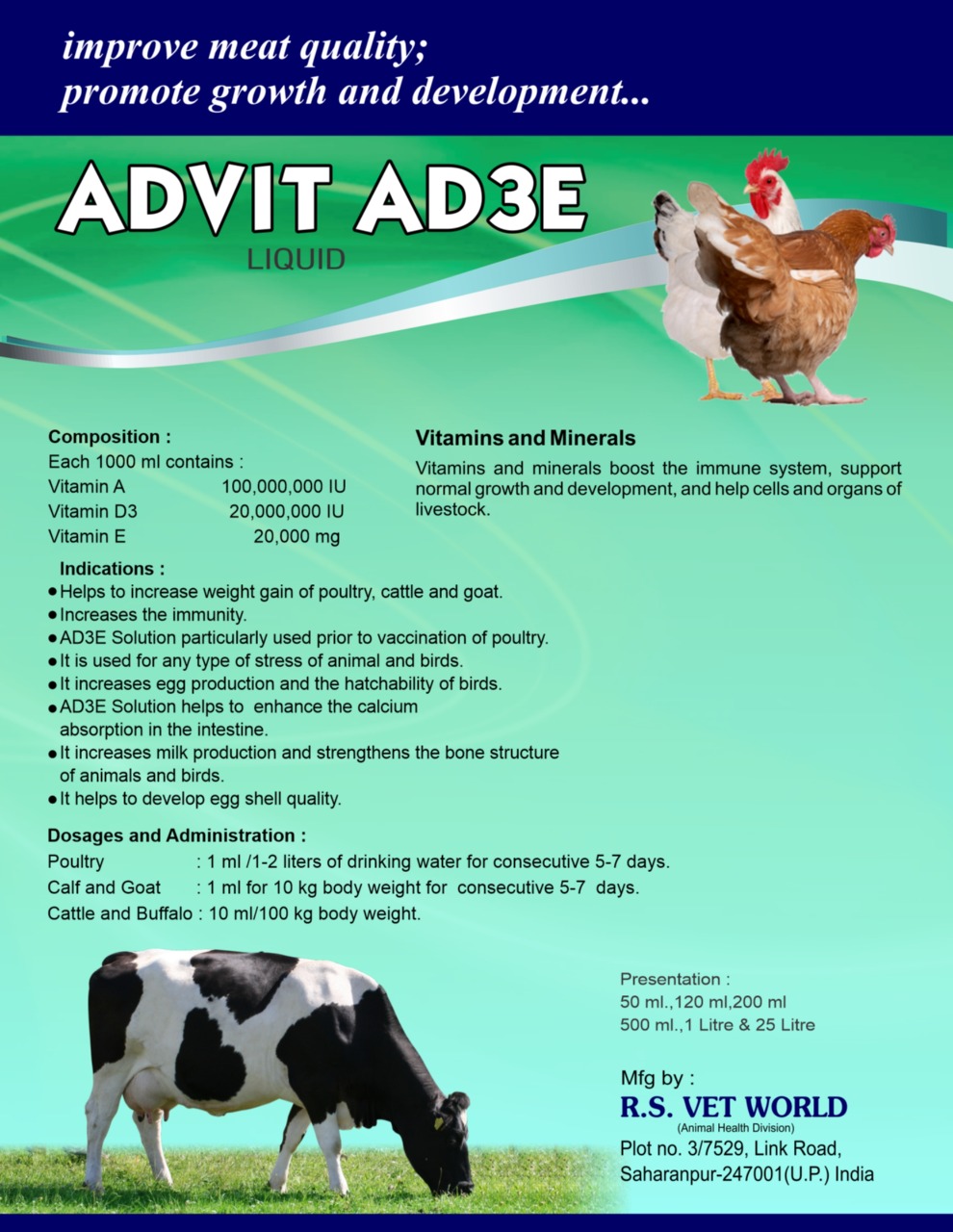 • AD3E Solution helps to enhance the calcium absorption in the intestine.
